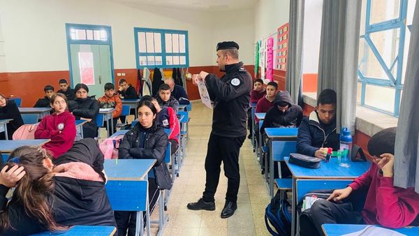 The customs police gives an awareness lecture to students of Terra Santa College in Bethlehem Governorate