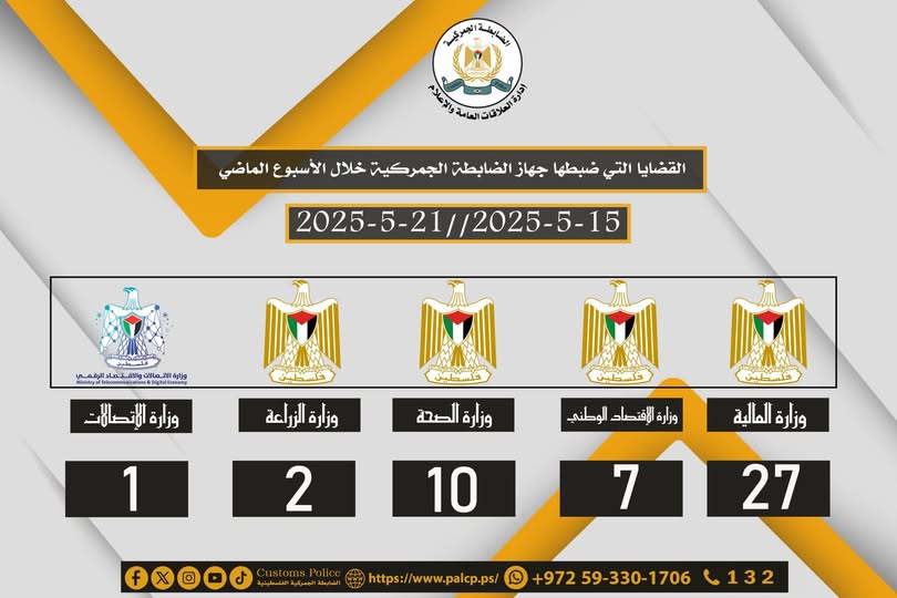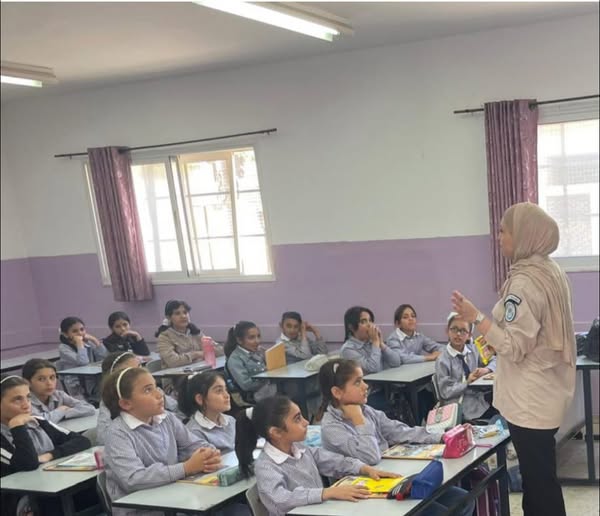 Ramallah - 5/25/2025 The Customs Officer gave an awareness lecture to students of Aqaba Elementary School, today, Sunday, in Tubas Governorate, benefiting (50) students.