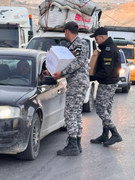 Customs police distribute water and dates to citizens and drivers in Bethlehem