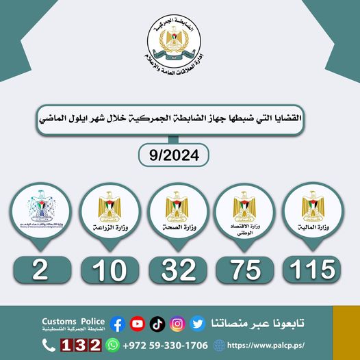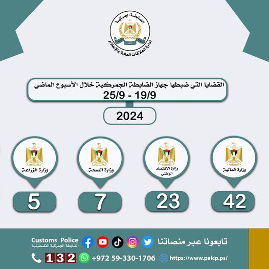 The Customs Police Department dealt with 77 cases during the past week in cooperation with partner agencies